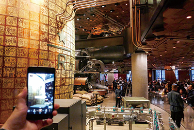 また、同店はアリババの新リテール技術を活用し、オンラインとオフラインを融合した新しい消費体験を提供する。例えば、アリババの拡張現実(AR)認識技術を初めて商業運用事例として導入。来店者は「淘宝(タオバオ)」のアプリで焙煎機やオブジェなどをスキャンすると、豆の生産や焙煎の仕方など、コーヒーができあがる過程をARを通じて鑑賞できる。地元の人の注目度は高く、駆けつけた10日午後には、50人程度の行列ができていた。上海観光の目玉スポットになるかもしれない。