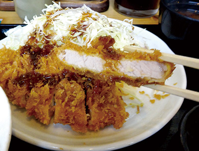 たまにがっつりと昼食を食べたい時がある。そんな時に富士通の丸子シニアマネージャーが行くのが「とんかつ まるや」だ。都内のオフィス街を中心に11店舗構えるチェーン店で、富士通の汐留オフィスと同じビルにも「立ち呑み汐留店」が入っている。一押しのメニューはロースかつ定食。献立は白米、赤みその味噌汁、香の物、キャベツ、そして皿の半分を占める大きなロースかつだ。高温で揚げたかつは衣がさくさく、肉はしっとりとしていて、肉の旨みと甘さがぎゅっと閉じ込められている。大きさだけではなく厚さもしっかりある。さらに白米とお味噌汁はおかわり自由なので、「ついつい食べ過ぎて、午後は眠たくなってしまう」のも納得だ。