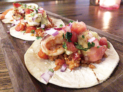 運ばれてきたタコスは、彩り豊かで食欲をそそる見た目。さっそく、トルティーヤで具材を包み、口に運ぶと、ぷりぷりとしたエビの食感が非常に美味。コロナビールを味わいながら、しっかりとメキシコ気分を楽しませてもらった。