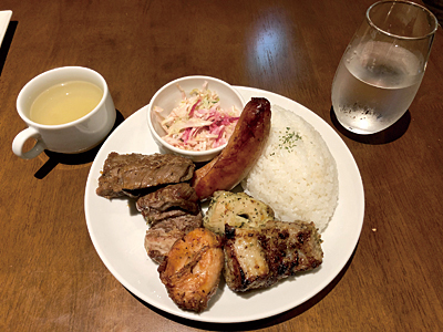 いま注目のスタートアップ、ホロラボの中村薫CEOがすすめてくれたのは、シュラスコ専門店「ALEGRIA」。入ってみるとシックな内装で、落ち着いた照明と余裕のある席配置でゆったりと過ごすことができた。「ホロラボのスタッフのなかでも人気」だというこのお店、注目のメニューは大きな肉がごろごろと盛られたミックスプレートだ。鳥、牛、ソーセージといったさまざまな種類の肉に、サラダとライスがつく。塩味のきいた肉をおなかいっぱい味わうことができる。ちなみに、スープもセルフサービスでついてくる。
