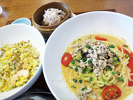 今回、いただいたのは平日限定の「選べる麺ランチ」。チャーハンと焼売、そして麺類は坦々麺、サンラータンメン、チャーシューメン、エビワンタン麺などから選べる。料金は1280円と比較的リーズナブルだ。