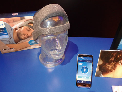 これまでの睡眠用ウェアラブル端末は、センサーで睡眠の深さや浅さをリアルタイムで検知しながら、スマートフォンのアプリでグラフに可視化して、アドバイスしたりする程度のものが多かった。フィリップス・ジャパンの「SmartSleepディープスリープヘッドバンド」は、同社が14年かけて開発した技術を搭載。深い眠りに入ったときの徐波睡眠の段階を検知して、500~2000Hzのオーディオトーンを独自のアルゴリズムで流す。眠りに積極的に働きかけ、睡眠の質を高める画期的な製品だ。