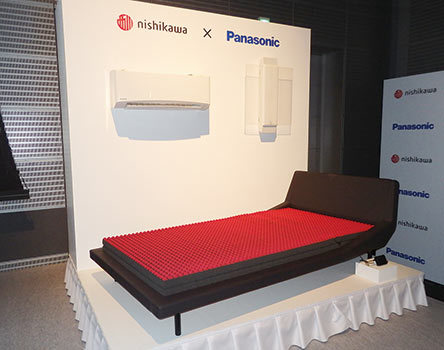 大リーグの大谷翔平選手など著名アスリートも愛用する西川の「エアーコネクテッド」SIマットレスに搭載したセンサーが睡眠中の呼吸など微細な動きを検知して、パナソニックが開発した専用アプリ「Your Sleep」に送信。アプリを介してエアコンやLEDシーリングライトを制御しながら快眠空間を実現する。