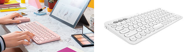 日本語配列に、MacやiPadなどで使われるcommandキーやMac特有のoptionキーが備わった小型のBluetoothキーボードに、iPadやiPhoneにマッチする「ローズ」と「オフホワイト」が加わり、既存のブラック・ブルー・レッドとあわせて全5色となった。