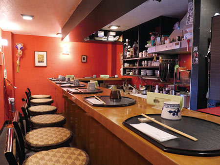 もともと佐藤さんは会社勤めだったが、日本酒好きが高じて、「どうしても日本酒に携わる仕事がしたい!」と飲食の世界に転じ、7年前にこの店をオープン。旬の魚介や野菜のほか、自ら手打ちしたそばなど、お酒を楽しむための料理を揃えている。さまざまな地酒を100ml・500円均一で提供。これからの季節、一押しの肴はホヤの自家製塩辛だ。日本酒好きはもちろん、これからもっと日本酒を知りたいという人にもおすすめだ。(螺)