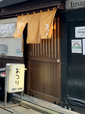 セキュリティ商社のアズジェントの渡辺寛・シニアセールスエンジニアがランチによく行くお店として紹介してくれたのは、新富町駅から月島方面へまっすぐ向かった途中の路地裏にある小料理屋「おつり」。アズジェントのオフィスからも徒歩約2分と近い距離にあり、新型コロナウイルス感染拡大の影響でリモートワークになる前は「週1回は通っていた」のだとか。