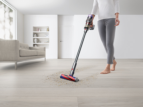 軽量化にあたってFluffyクリーナーヘッドを45%小型化。ソフトなナイロンフェルトブラシと静電気の発生を抑えるカーボンファイバーブラシは大きなゴミから小さなゴミまで同時に吸い取る。小型ながらもパワフルなDyson Hyperdymiumモーターを搭載するため、基本の吸引力も犠牲にしていない。(至)