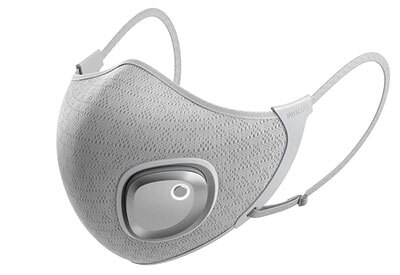 特徴は家電分野で培った空調テクノロジーを生かし、電動ファンを搭載していること。大量の空気を循環させることで、マスク内の環境を常に清潔かつ快適に保つことができる。空気は下向きに排出されるので、メガネが曇ったり、口臭が鼻に上がってきたりしないのもうれしいポイントだ。