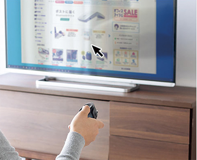 400-MABT132は、Bluetoothマウスで傾きを感知するジャイロセンサーの搭載によって空中で操作が可能。マウスを水平の状態から90度傾けることで、ジャイロセンサーが働いて手首の動きに合わせて、空中でマウスカーソルが動く。寝転びながらの操作に加えて、大きな画面に出力した内容を操作することもできる。カーソルの操作だけでなく、メディアプレーヤーなどのトラックを進めたり戻したり、音量を調整したりと、さまざまな操作が可能だ。机上に置いて、通常のBluetoothマウスとしても使用できる。