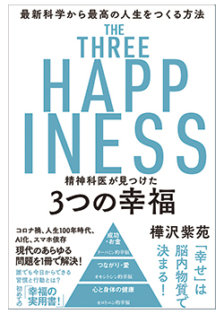 精神科医として長年の経験を持ち、多数の著書を出版してきた樺沢紫苑氏が「集大成的な1冊」と位置づける本書は、「幸せになる方法」を解説した実用書だ。本書で最初に言及するのは、ずばり「幸福とは何か」ということ。人が「幸せ」を感じるときに分泌される脳内物質に着目し、その内の「セロトニン」「オキシトシン」「ドーパミン」が「3大幸福物質」だとする。言い換えれば、この幸福物質を出すことが「幸せになる方法」であるという“解答”が示されている。その上で著者は幸福を、「セロトニン的幸福」(健康)、「オキシトシン的幸福」(愛や友情などの“つながり”)、「ドーパミン的幸福」(お金、成功)に分類し、健康→つながり→成功の順で幸せになるべきだと、科学的、論理的に説くことを試みている。