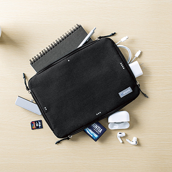 そんな悩みを解決してくれる手軽な手段が、ガジェットをまとめる収納ケースだ。サンワサプライの「200-BAGIN021/22」の特徴は、ポケットが4層に分かれていて、それぞれに入り口が設けられていること。用途別に使い分ければ、取り出すときに他のガジェットやケーブルとごちゃ混ぜにならずに済む。A4とB4の2サイズがあるので、タブレットなどを持ち歩くなら大きめのサイズがおすすめだ。(雀)