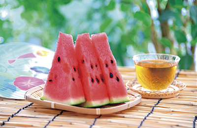 スイカは、ブドウ糖やビタミンA、カリウムなどをバランスよく含んでいることから、疲労回復、むくみ解消、熱を冷ますなどの効果が期待できる。まさに、夏のために作られた果物だと言える。
