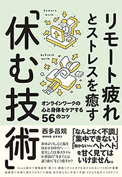 本書では精神科医の西多昌規氏がリモートワークにおける具体的なシチュエーションに沿って疲れの原因とその予防対策を紹介する。例えば、Web会議の場合、人間の脳はズームアップされた他人の顔を見ているうちに圧迫感や恐怖感を覚えるという研究結果を示し、この場合は、Web会議ツールの画面モードを切り替え、同じ映像が続かないようにするだけで脳の負担を和らげることができるとしている。その他にも、リモート環境での有効な休憩方法、オンオフの切り替え方などが書かれており参考になる。