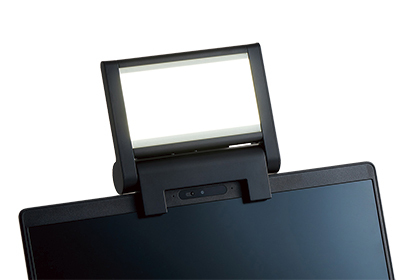 現実と同様に、オンラインでも表情や目線に込めた意思を相手に伝えるなら、顔を明るく照らしながら会議に参加するのも手だ。キングジムのWeb会議用スクエアライトは、PCに簡単に取り付けられて、ウェブ会議中の顔を明るく照らせる照明。ディスプレイ部分にクリップで挟んで固定したり、クリップをスタンド代わりにデスクに置いたりして使うことができる。使用する際はPCなどのUSB端子から給電する。
