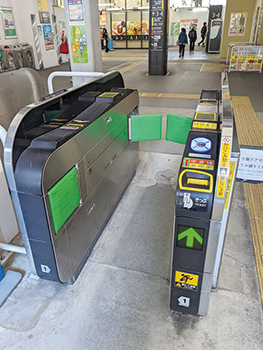 北千里駅ではパンチ穴式と磁気式の併用で運用がスタートしたが、その後ほどなくして磁気式に統一され、その後全国で磁気式が普及。2000年代以降はICカードに置き換えが進んでいる。さらに最近では、紙の切符のほかにスマートフォンの画面にも対応できる、QRコード式の改札機も一部で使われている。JR東日本も一昨年、新たなチケットレスの形としてQRコード改札の実証実験を都内で行った。自動改札機の発明から約半世紀を経て、切符の情報を光学的に読み取る方式が再び登場した格好だ。テクノロジーは循環しながら発達していくものだと感じさせる。(螺)