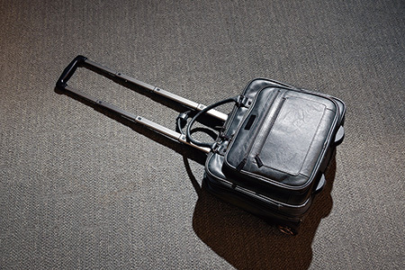10年以上にわたってキャスター付きの鞄を愛用している。移動していると、社内外の人に音で気づかれるといい、「転がす時の音は自分のテーマソングのようになっている」と笑う。