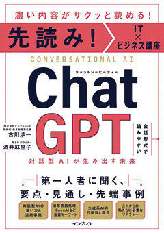 AIに関する話題がニュースなどで連日取り上げられている。その中でもOpenAIが開発した対話型AI「ChatGPT」が最も注目を集めていると言っていいだろう。人と会話するかのように自然な受け答えを生成するChatGPTは、私たちが「この先AIに仕事を奪われるのではないか」といった漠然とした不安を抱くほど、進化の速さを感じさせるものだ。本書は、ChatGPTの実力や技術的な背景、可能性、課題、ビジネス事例などをその分野の第一人者に質問する形式で深掘りする。現時点でChatGPTができること・できないこと、使う上での基本的な考え方を簡潔に説明。もっともらしい文章を生成するが、そこには時にうそが混じることもあり、真偽は必ず人がチェックする必要があるなど、使う際に心得ておくべき点も指摘している。AIをビジネスに使う際の注意点、犯罪に悪用されるリスクなど、良いことばかりではない側面にも目を向けている。