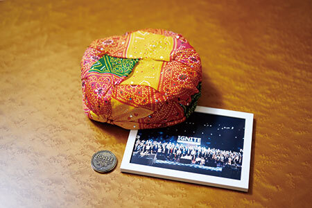 インドのベンガルールで2023年7月に開催したNTTデータグループの幹部研修会「グローバルカンファレンス」の催し物コーナーで購入した地元の民族衣装風の帽子がお気に入りだ。朱色を基調として緑色や黄色がアクセントカラーに入り、キラキラと反射する宝石のような光り物が縫い付けてある。「一目で気に入って、当社グループが開発するスマホのキャッシュレス決済を使って購入した」と話す。