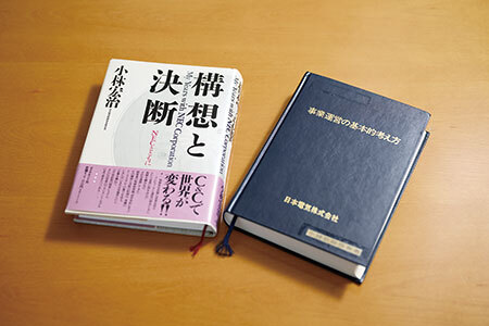 先人が残してくれた経営に関する財産として、NECの中興の祖である小林宏治元会長の著作「構想と決断」と、小林元会長の社長就任以降の書簡や談話、訓示をまとめた社内向けの書誌「事業運営の基本的考え方」から多くのことを教えられるという。小林元会長の発言の中で一番好きな言葉は「安定な企業は不安定で、不安定な企業は安定であると心得よ」。世の中の変化に対し、安定に固執せず自ら変わり続けることができる企業でなければ、時代遅れになってしまうという意だ。NECの変革に取り組む中で「考えれば考えるほど含蓄のある言葉」だと話す。