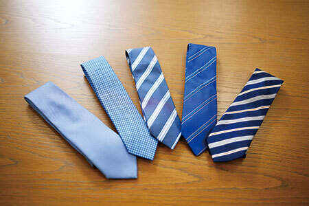 青系統のネクタイが好きになったのは、当時、小学生だった子どもが選んでくれたことがきっかけ。縞模様が入っているものを数多く愛用している。子どもはすっかり成長し「父親のネクタイを選んでくれなくなったので、自ら青系統のネクタイを選んで買いそろえている」とのこと。周囲を見渡すと、夏はクールビズ、冬もネクタイをつけないビジネスカジュアルが昔に比べてずいぶん増えた。とはいえ、訪問先の業種によっては、ネクタイつける派が主流なケースもあり、「お気に入りの青系統のネクタイをいつでもつけられるよう手元に置いている」と話す。