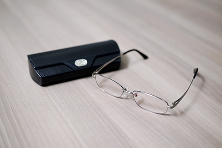 44歳の時、近眼だった目のレーシック治療を受けた。医師からは40歳を過ぎて受けると老眼が早まると言われたが、気にせず手術を受け、視力が回復し快適な生活が続いた。ところが2年後「ご飯が白い塊に見えた」。老眼がみるみる進み、眼鏡が手放せなくなった。仕事で使っているのは、福井県のブランド「E-BRIGHTS(イーブライツ)」のもの。丈夫なチタンフレームとシンプルなデザインが気に入っている。自宅では、リビングや書斎などすべての部屋にそれぞれ老眼鏡を置いており「これがないと何も読めない」。視界をクリアにするために欠かせないアイテムになっている。