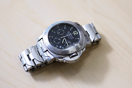 日本AMDに勤めていた当時、シンガポールに初めて海外赴任した際に現地で購入したパネライの腕時計を愛用している。元々、時計自体にはあまり興味がなかったが、長く使えるところに惹かれた。購入したのは15年ほど前になるが、これまで自身のビジネスシーンを長く支えてきた。また、「長男が20歳を迎えた時にプレゼントする」ことを見越した記念品でもあるといい、あと5年ほどで譲る予定となっている。お気に入りポイントは、なんといってもその重さと分厚さ。スチール素材でできているため、腕に付けると「ずっしりして“時計をしている”という感覚になり、身が引き締まる」と話す。