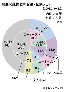 Play@TVは、パソコン内部に保存してある静止画や動画を、無線LANなどのネットワーク経由で、テレビ画面に転送する装置。従来のテレビ映像をパソコンに取り込む「キャプチャ」とは異なる。しかし、BCNランキングの映像関連機器分野で、上位を占めるのはビデオカードやキャプチャ関連に強いエーオープンやアイ・オー・データ機器だ。未開拓の市場に向けたPlay@TV系の製品シェアは、まだ低い。