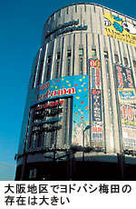 なかでも、梅田地区にそびえたつ「ヨドバシカメラマルチメディア梅田」の影響は大きい。同店は、売り場面積が約2万平方メートルという規模に加え、一大ターミナル駅のJR大阪駅前という好立地条件。顧客は、神戸や京都からでも乗り換えなしで訪れることが可能。「帰宅途中にちょっと寄ってみる」こともできる。駐車場は、ヨドバシカメラ自体で1000台収容できるスペースを確保しており、ほかにも駅周辺に数多くの有料駐車場がある。