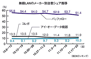 牧誠社長は、「A.O.S.Sのビジネスは、06年度に200-300億円の売上高となり、関連ビジネスも含めれば500億円規模になるだろう」とみている。デジタル家電が浸透してくれば、無線LANユーザー層の裾野が広がる可能性が高い。しかし、家庭内における無線LAN環境の構築は、セキュリティ面や設定の難しさといった問題が浮上している。今後はこうした課題をクリアし、ハード機器の販売に加え、ネットワークの構築を含めたサービスをいかに提供できるかが、無線LANで主導権を握るカギになりそうだ。