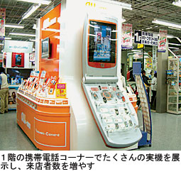 05年秋にオープンを予定している東京・秋葉原電気街の新店舗のトライアルとしても生かす取り組みも実施している。3階部分のパソコンおよび関連機器コーナーでは、組立パソコン用パーツの品揃えを充実させた。パーツメーカーと協力して、通信販売でしか扱っていないパーツ類が現物を置くことで実際に売れるかどうかをテスト的に展示しているケースもある。「売れ行きが良ければ、安定供給できるメーカーから大量に仕入れる」ことも検討に入れるなど、パソコンマニア獲得も狙う。