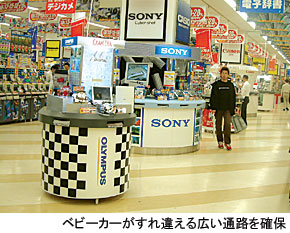 薄型テレビコーナーは、アテネオリンピックで需要が増えると予想しており、近く増床を計画している。現状のスペースからどの程度コーナーを広げるかは、「どれだけ薄型テレビを買う人が増えるかを試算して、縮小するコーナーを今後決めていく」予定だ。