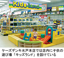また、競合店舗との差別化策として実施しているのが、「子供連れの家族が安心して来店でき、楽しめる」こと。子供が座れる買い物カートや車いすなどを用意するとともに、子供の遊び場「キッズランド」を設置している。こうした「安心・楽しさ」の提供が家族に好評を得ており、土日の来店者数は平均で5000人前後に上る。