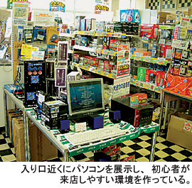 村上氏は、「全国的にみても、福島県はパソコンユーザーが少なく、パソコンマニアも少ないのではないか」と、福島県のパソコンユーザーについて語る。大阪・日本橋電気街を本拠地に、東京・秋葉原電気街や名古屋・大須電気街などパソコンマニアが集まってくる地域を得意とするパソコン工房にとって、「福島市は売上高を伸ばしていくのが難しい地区の1つだ」と認める。実際、2003年度(04年3月期)の売上高は「前年並み」にとどまっている。しかし、パソコンユーザーが少ない点を逆にメリットと考え、市場の掘り起こしを図ることにより、「今年度は、確実に前年度を上回る売上高を狙う」と闘志を燃やす。