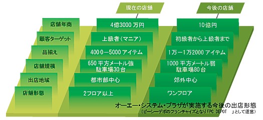 オーエー・システム・プラザが不振に陥ったのは、利益よりも売上拡大を重視する戦略に落とし穴があったことにほかならない。家電量販業界では、各社の過剰出店が進み、価格競争が一層激しさを増している。これに打ち勝つためには、低価格路線でも利益を確保できる体制を貫き通さなければならず、「これまでの店舗形態では勝ち残れない」(同)との理由から、方向転換に踏み切った。