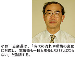 同振興会が模索しているのは、「電気街をエレクトロニクスの新しいフィールドにすること」(小野会長)。秋葉原クロスフィールドには、産官学連携機能や情報ネットワーク機能などを集積する目的で、大学や企業などが入居することになる。「学生やベンチャーが開発した新しい技術を公開するために電気街を活用してもらうというのも1つの手だ」と、小野会長は訴える。例えば、ハードウェアおよびソフトウェアとして商品化して各ショップの店頭で販売することや、来店者に新技術を体験してもらうためのデモコーナーの設置、休日に歩行者天国になる中央通りを活用して新技術を披露するイベントの開催などが考えられるというわけだ。