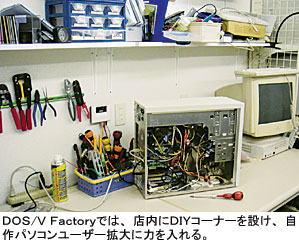 自作ユーザーを増やすために店内にDIYコーナーを設け、完成まで無料で技術指導している。加えて、サポートメニューの充実で、「何気なく店内に入ったユーザーが、“パソコンを組み立ててみよう”とパーツを購入して組み立てるケースも多くなった」と、自作パソコンへの誘導に効果を挙げている。(佐相彰彦)