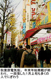 秋葉原が活気づいている。パソコンや家電機器などの需要がピークに達する12月。秋葉原電気街では、昨年冬のボーナス時期、クリスマスや年末年始と販売好調だったパソコン専門店や家電量販店が多い。