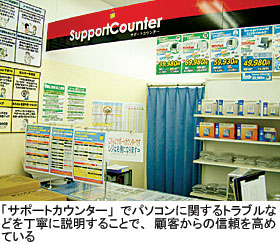しかし、低価格化は利益を圧迫することになる。そこで、競合店との差別化策という点からも、サポートの強化を徹底している。これは、駅前や電気街で店を構えていない郊外店では、「地域密着型のサポートが重要」(大野三規社長)というコンセプトから力を入れていることだ。