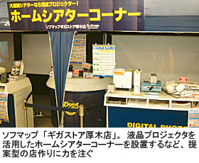店内では、DVDレコーダーや液晶プロジェクタ、スピーカーなどを活用したホームシアターコーナーを設置。「ユーザーが目で見て分かりやすい展示を行い、ネットワークメディアプレイヤーを使って、AVパソコンで録画したスポーツ番組などを大画面スクリーンで視聴できるなどといった提案も行っている」(松橋店長)という。提案型の店作りや接客が功を奏し、平日に主婦を中心に1000人、休日には家族連れなど2000人以上が来店するようになった。(佐相彰彦)