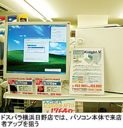 休日には、「パソコン中級者が買い替え用に低価格パソコンを選択し、予算に合わせて必要な機能やソフトを追加して購入する」ケースが多く、ファミリー客など100人弱が来店している。(佐相彰彦)