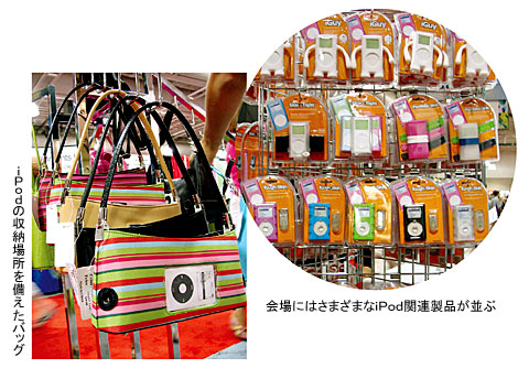 女性向けのiPod関連商品を販売しているデラポッドデラリュウデザイン(http://www.delapod.com/)は、iPod専用の収納場所を備えた女性向けハンドバッグを販売。アイキーチェーン(http://www.ikechain.net)は、トラックが踏んでも大丈夫なほどの頑丈さを備えたiPodシャッフル用ケース「iキーチェーン」を発売するなど、さまざまな企業がiPod市場を開拓しているのが今年の特徴だった。