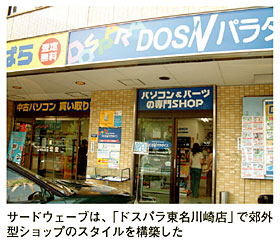 ドスパラ東名川崎店がオープンしたのは2000年6月。東京・秋葉原電気街を本拠地としていたサードウェーブにとっては初の郊外型店舗だった。オープン当初は、最新のCPUやメモリなどを秋葉原価格で購入できるという点で、これまでわざわざ秋葉原電気街まで足を伸ばしていたパーツユーザーが集まってきた。