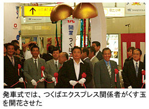 「つくばエクスプレス」が8月24日に開通した。同鉄道は、東京・秋葉原と茨城・つくば間を最短45分で結ぶ。運営会社である首都圏新都市鉄道は開業に先立って発車式を実施し、つくばエクスプレス関係者による「くす玉開花」を行うなど盛大に開通を祝った。