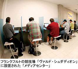 大会開催に向けてパソコン設置の準備を開始したのは2年前。IPインフラ会社のアバイアや地元キャリアのドイツテレコムと共同で、携帯電話やモバイルなどのネットワーク環境を考慮しつつ、ソフトウェアやハードウェアのパフォーマンステストを繰り返した。