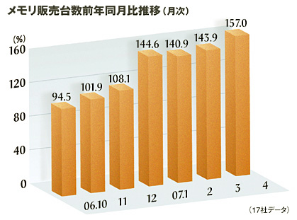 販売台数前年比12月から1月にかけてのカーブがやや急であることから、Windows Vistaの発売に伴うもので、その後も順調に成長しているものと思われる。