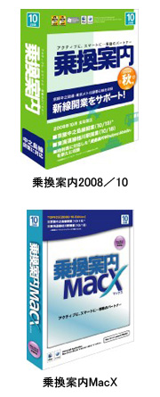 価格は、「乗換案内2008/10」が4200円、「乗換案内MacX」が3885円。また、「乗換案内2008/10」に1年間のサポートとバージョンアップ権が付属した「乗換案内プラス1年サポート」が1万500円。
