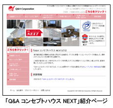「Q&A コンセプトハウス NEXT」は、東京都目黒区の一戸建て住宅をベースに、施設全体に次世代ネットワーク(NGN)を利用。情報家電ネットワークのモデルハウスとしての機能をもち、多様な情報家電端末を通して、デジタル家電・パソコン・ネットワークが融合した最新のデジタルライフを体感することができる。また、訪問サポートにおける、オンサイトスタッフの技術およびCS向上を目的とした教育の場としても活用可能となっている。