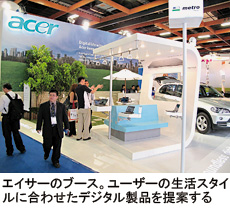 パソコン業界だけではない。エイサーから独立した台湾ベンキューは、自社ブランドのディスプレイ製品を中心に情報家電分野への進出に余念がない。同社の王文副会長は、「ディスプレイセントリックなビジネス展開」を掲げ、テレビ顔負けの高精細な映像を映し出すディスプレイ製品を続々と投入。地域的には「不況による傷が比較的浅い中国や中南米への大型投資を検討している」(王副会長)と、ディスプレイを切り口とした情報家電ビジネスの基礎固めを新興国で行う考えを示した。高精細な映像を伝送する世界標準のHDMI規格などが一般化し、IT産業と情報家電の垣根が低くなったことも、ベンキューにとってプラスに働く。