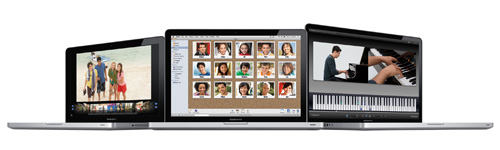 Macの新しいラインアップも披露された。今回発表したのはノート型で、「MacBook Pro」に新たに13.3型ワイド液晶搭載モデルを追加。このほか、従来モデルと同様の画面サイズ15.4型、17型ワイド液晶搭載モデルと、薄型・軽量ボディで13.3型ワイド液晶を搭載した「MacBook Air」の性能を強化した。