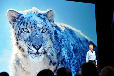 Mac OS Xの「Snow Leopard」とは「ユキヒョウ」のこと 講演の最中には、製品の詳細なスペックや価格が発表されるたびに大きな歓声と拍手が沸き起こり、会場は盛り上がりを見せた。